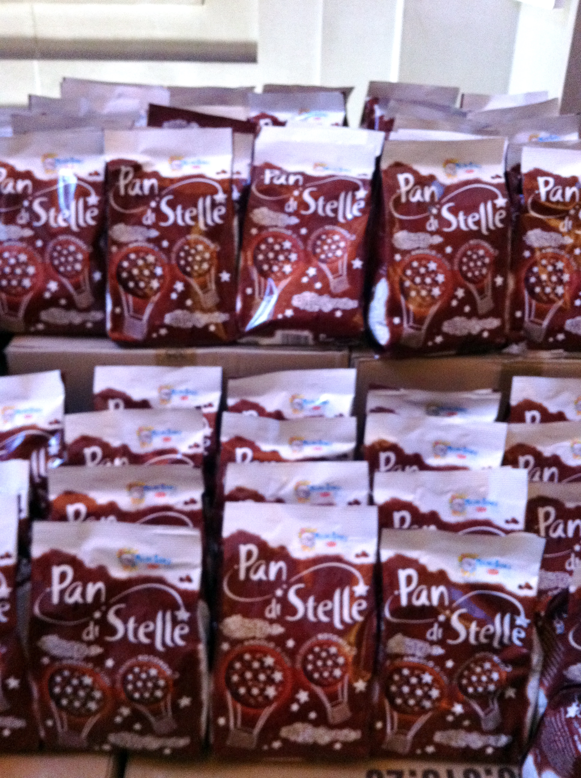 A favorite of Andrew and mine from Italy, the Mulino Bianco cookies "Pan di Stelle" are hard little chocolate biscuits - good for absorbing coffee!