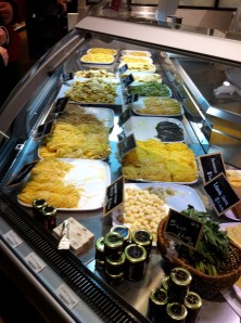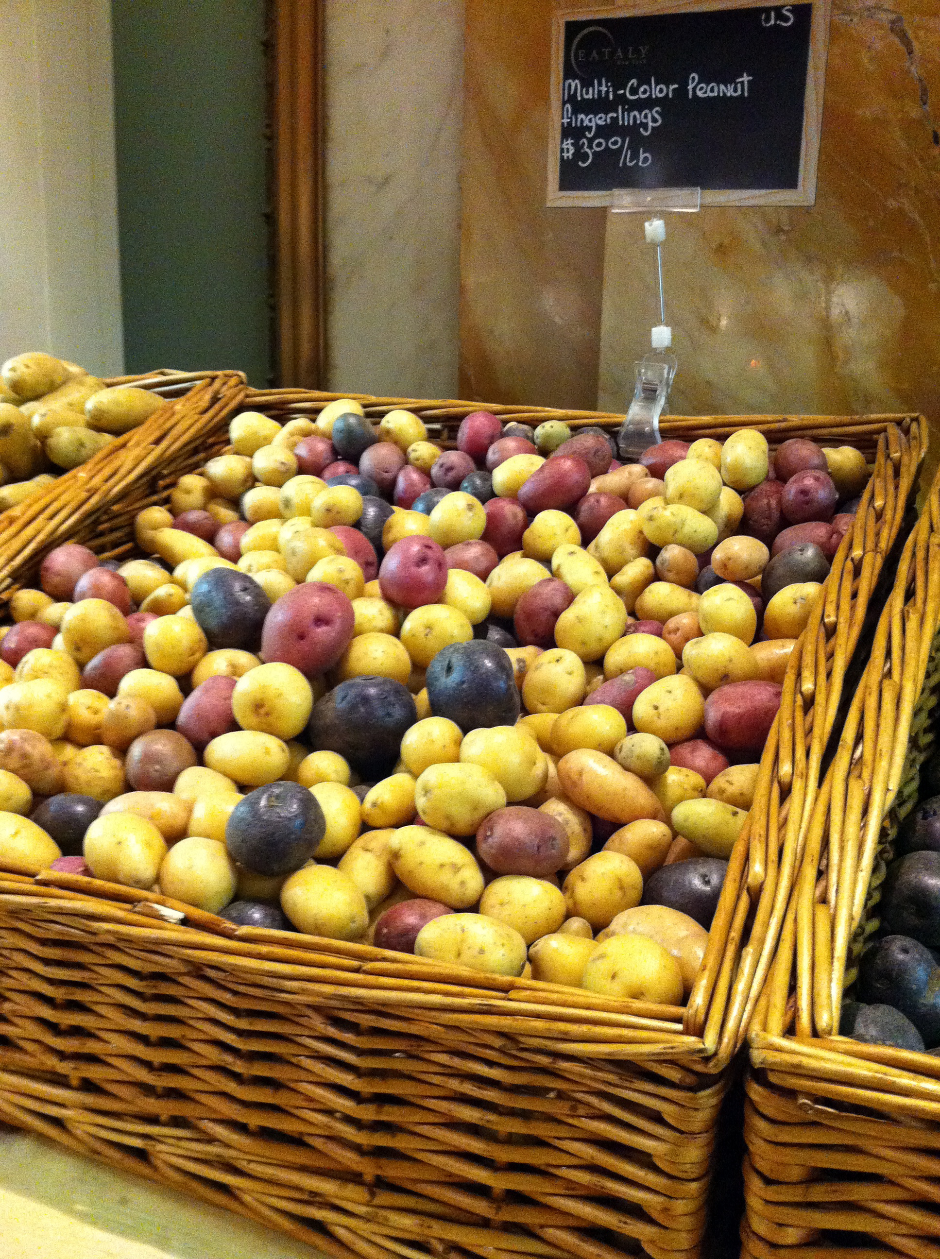 Those who know me well know that, despite my general Francophilic tendencies, French food is not my favorite. Italian food, on the other hand? Mangia! So I was beyond excited to check out Eataly yesterday, the Italian specialty market and dining hall from Mario Batali, Lidia Bastianich, and others. It’s a huge warehouse-type space in the Flatiron district of NYC, and it contains both fresh food as well as dried pantry staples, like pasta (obviously). I went with a good friend, and as we wandered through the halls with our gigantic shopping baskets at our sides, our conversation was reduced to “oooh yum!” and “oh look at this” and “wow,” and variants thereof. Below are a few quick snapshots of my trip, and I wish I’d been able to capture better pictures of some of the food “stations” (like the rotisserie chicken station, where the chickens were roasting in the oven over a huge pan of cut potatoes, that were catching the juices of the chickens……need I say more?) There aren’t any photos of the themed restaurants (La Pizza, La Pasta, La Verdure – vegetarian, La Pesce – seafood) that are tucked within the marketplace, but we enjoyed a delicious meal at the La Pasta restaurant, and made sure to save room for gelato afterwards. If you’re ever in this neck of the woods, stop and check it out – your stomach will thank you!