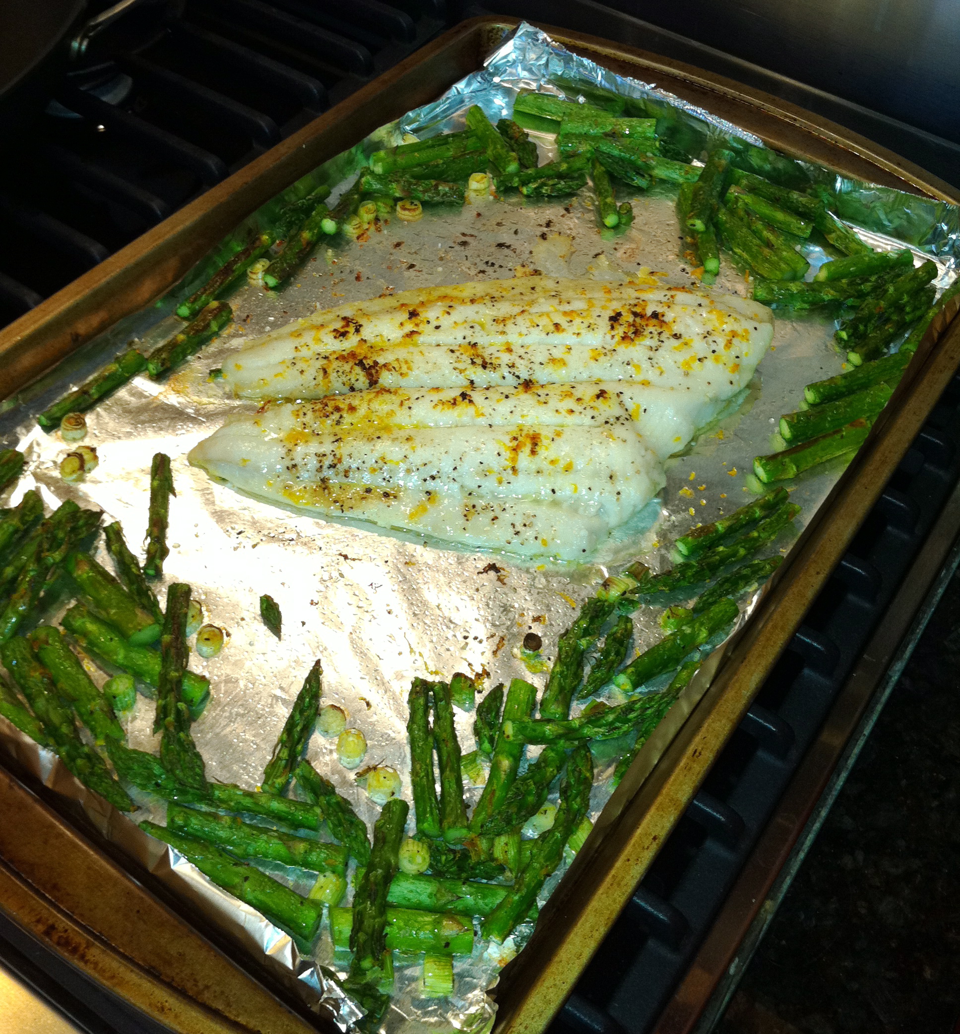 Need a speedy, healthy supper that’s great in springtime? Try this out – I created this over the weekend and thought that the fresh flavors of asparagus, orange, and scallion worked well with the delicacy of the sole.  I especially loved that it only took 15 minutes start to finish!