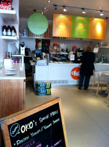 And speaking of hot weather, slowly but surely the weather got gorgeous in NYC here yesterday, so much so that I had my inaugural yogurt shake at my favorite fro-yo place, Oko Yogurt in Forest Hills. I’m still not convinced of the health merits of a cappucino frozen yogurt shake, but at least I can tell myself it’s not an ice cream shake from Haagen-Dazs…….