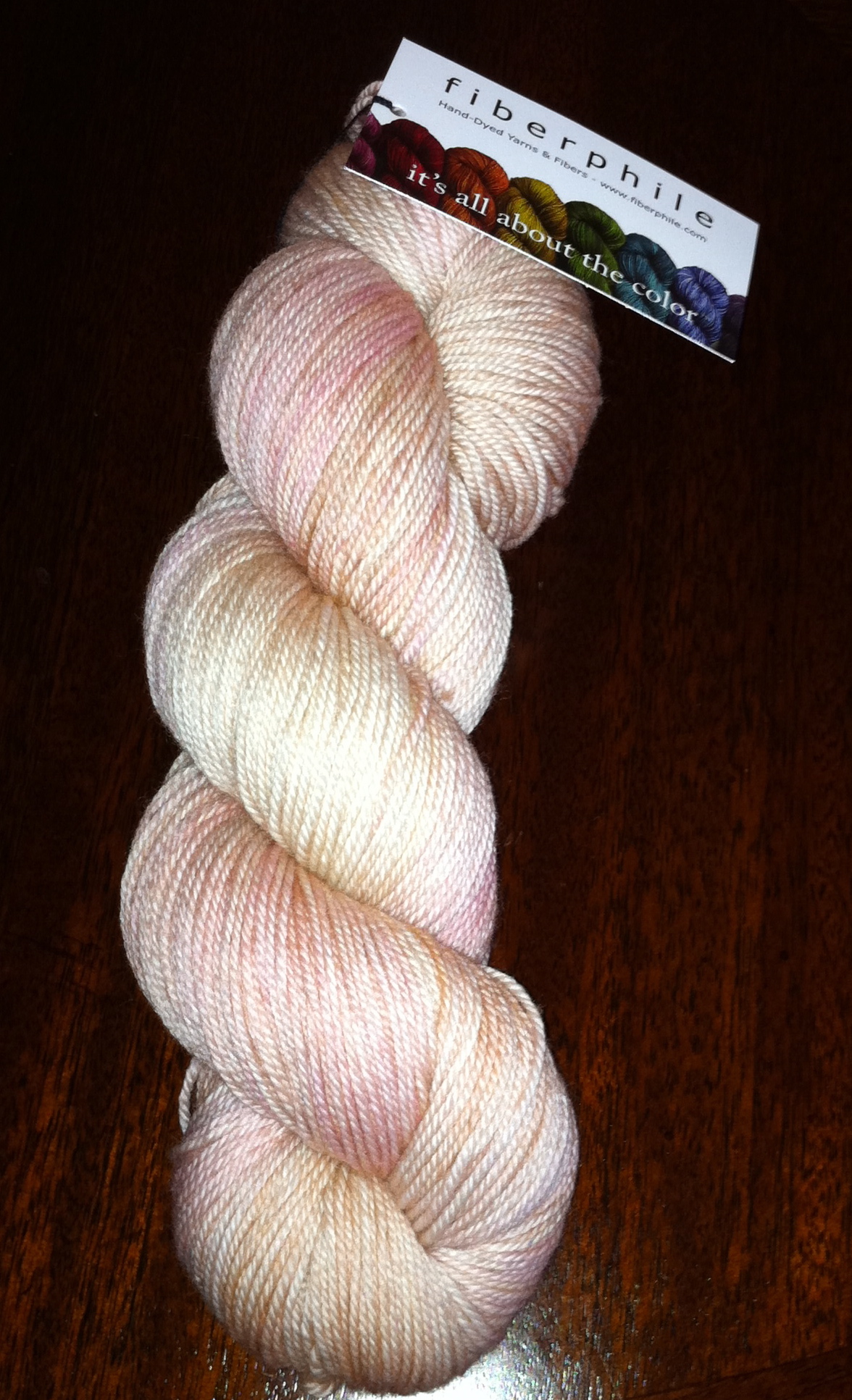 This yarn is Fiberphile’s MCN (merino cashmere nylon) sock blend, and it has a whopping 375 yards per skein, so I know I’ll get a generous and soft pair of socks out of this. The colorway is “Sakura” (which means “cherry blossom” in Japanese) and it was created especially to fund the dyer’s charitable efforts in Japan following their earthquake and tsunami. This will be my first design project with Fiberphile yarn, so I’m really looking forward to it, and the yarn is certainly luxurious enough to create a fabulous end result.
