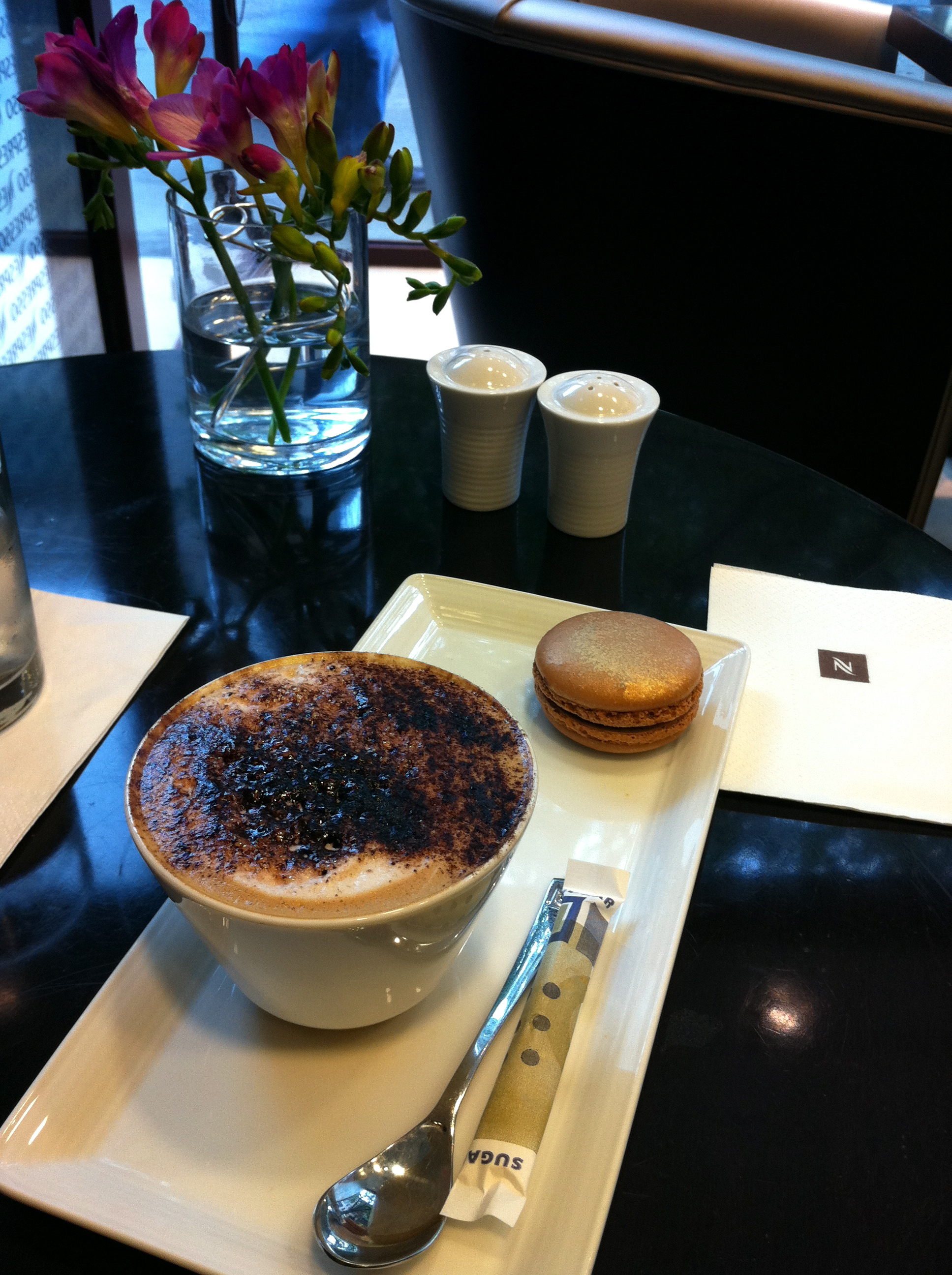PS: I’m also happy to report that the caramel latte at Nespresso’s Madison Avenue boutique is scrumptious, as is the gold-dusted caramel macaron that comes with it. Â Just sayin’.