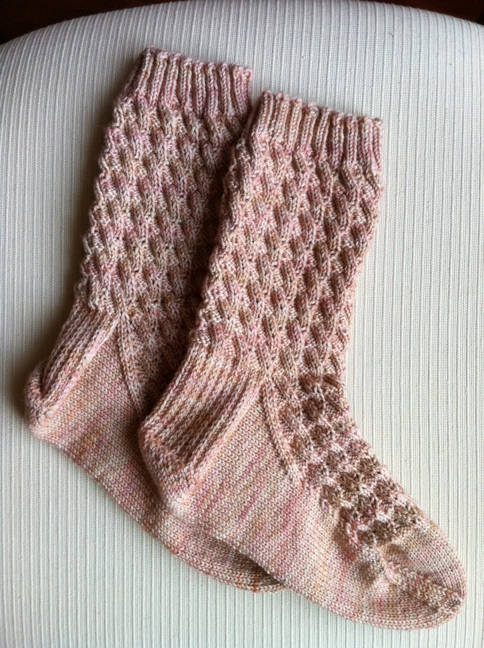 I just love your completed socks, and that is due to the fact that they remind me very much of the “popcorn” socks, which were always white, that I loved to wear…”back in the day”…and there is no need to say exactly HOW FAR back it really was…!