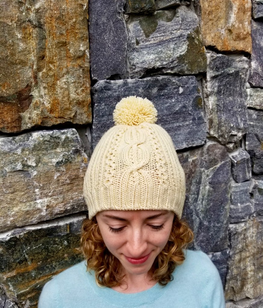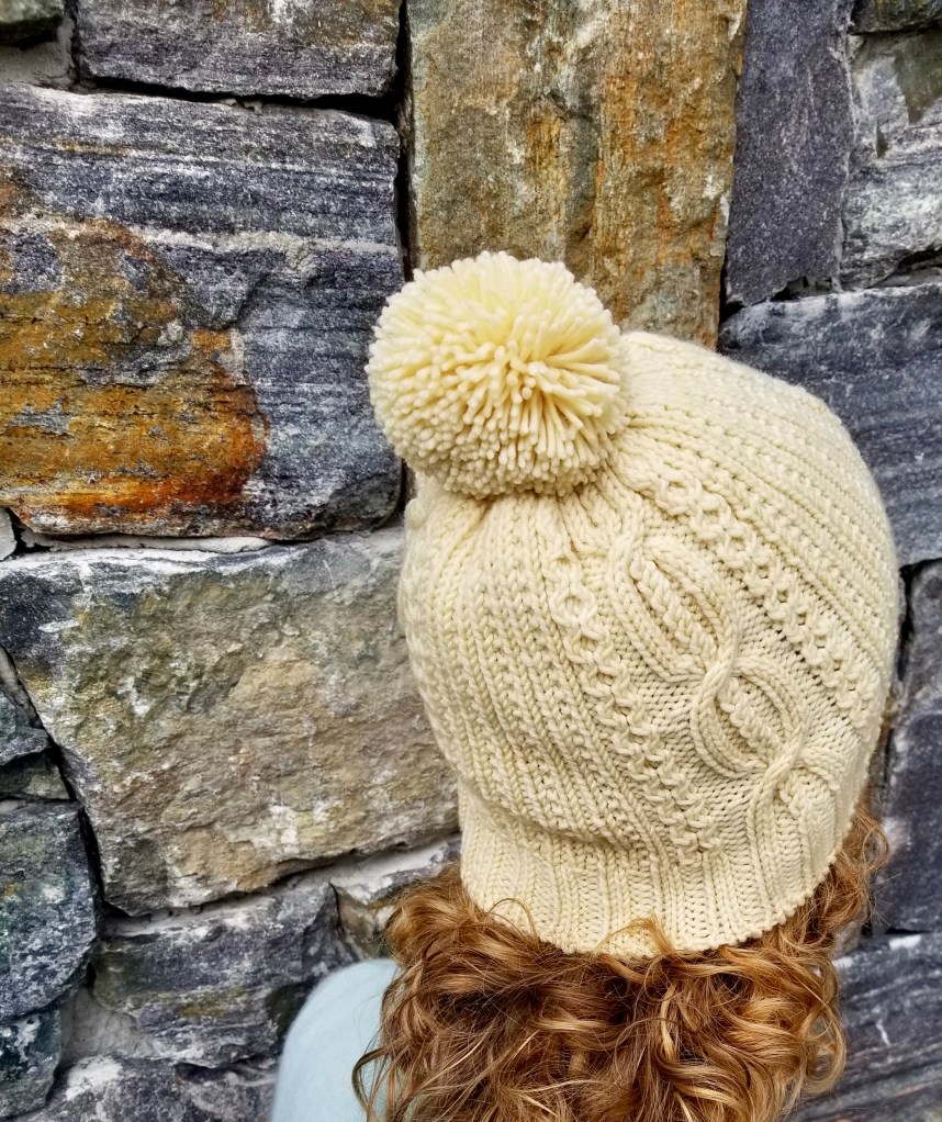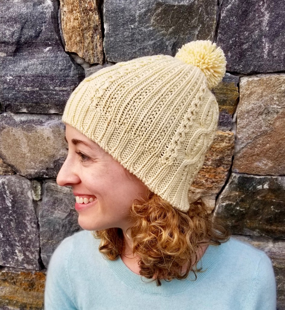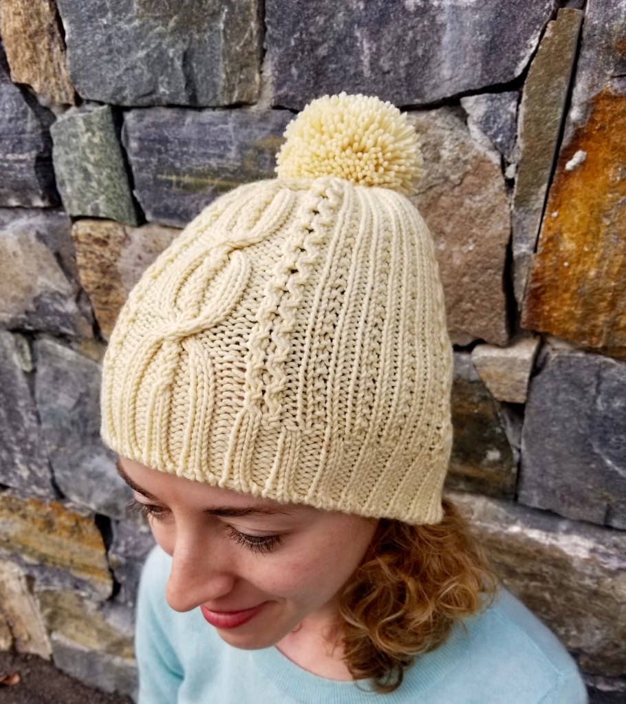 This design was one of those times where I could not knit anything else until I got this one completely figured out! Inspired by, and named for, one of the loveliest autumn destinations I’ve ever visited, the Rhinecliff Hat features everything that I love about hat knitting: classic cables, timeless texture, and a cozy brim. (And an enormous pom-pom.)