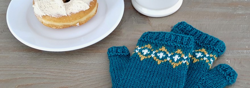 Finally, you might be wondering about the name of this design. Those of you who know me know that I’m always game for a (nearly boiling) cup of coffee and something sweet to go with it (*cough* MAPLE DONUT *cough*). In Swedish culture, a “fika” is a coffee break, an opportunity (however brief) to relax with friends and family and enjoy a sweet treat. These mitts were inspired by that philosophy, by embracing knitting as a way to relax with a quick and colorful project in the middle of your daily routine.