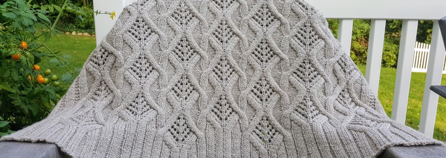 I knew that I wanted to knit a blanket for my nephew and I also knew that I wanted something classic with a twist. We all know how much I love cables, so that feature was a given. Since winters in the South aren’t (usually) as extreme as in the North, I thought that injecting a lace element into a cabled structure would help lighten the overall heft of the blanket and also provide that visual “twist” that I was looking for!
