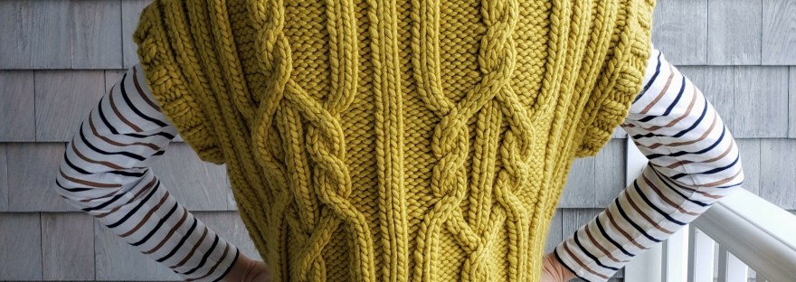 The Goldsmobile Top was inspired by a flexible approach to dressing for fall: even the sunniest days are book-ended with cooler mornings and evenings. This cabled top is designed to work equally well over a sleek turtleneck or a well-loved plaid flannel shirt. There is no shaping in the body and the armholes are sized to accommodate layering.