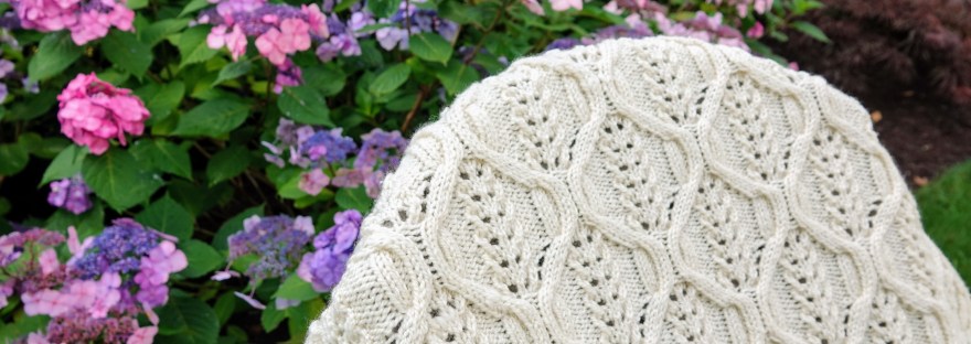 Gently meandering cables provide the perfect frame for leaf-inspired lace, making this blanket perfect for warm and cool days alike. I designed this blanket for a very special baby girl born earlier this Summer, but I think this pattern works just as well for boys.