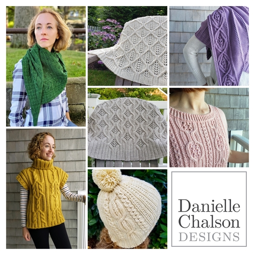 And here’s a collage of some of my own patterns that are included in the sale, including my newest designs like Flint Hill, Linnet, Avocet, and Summersweet: