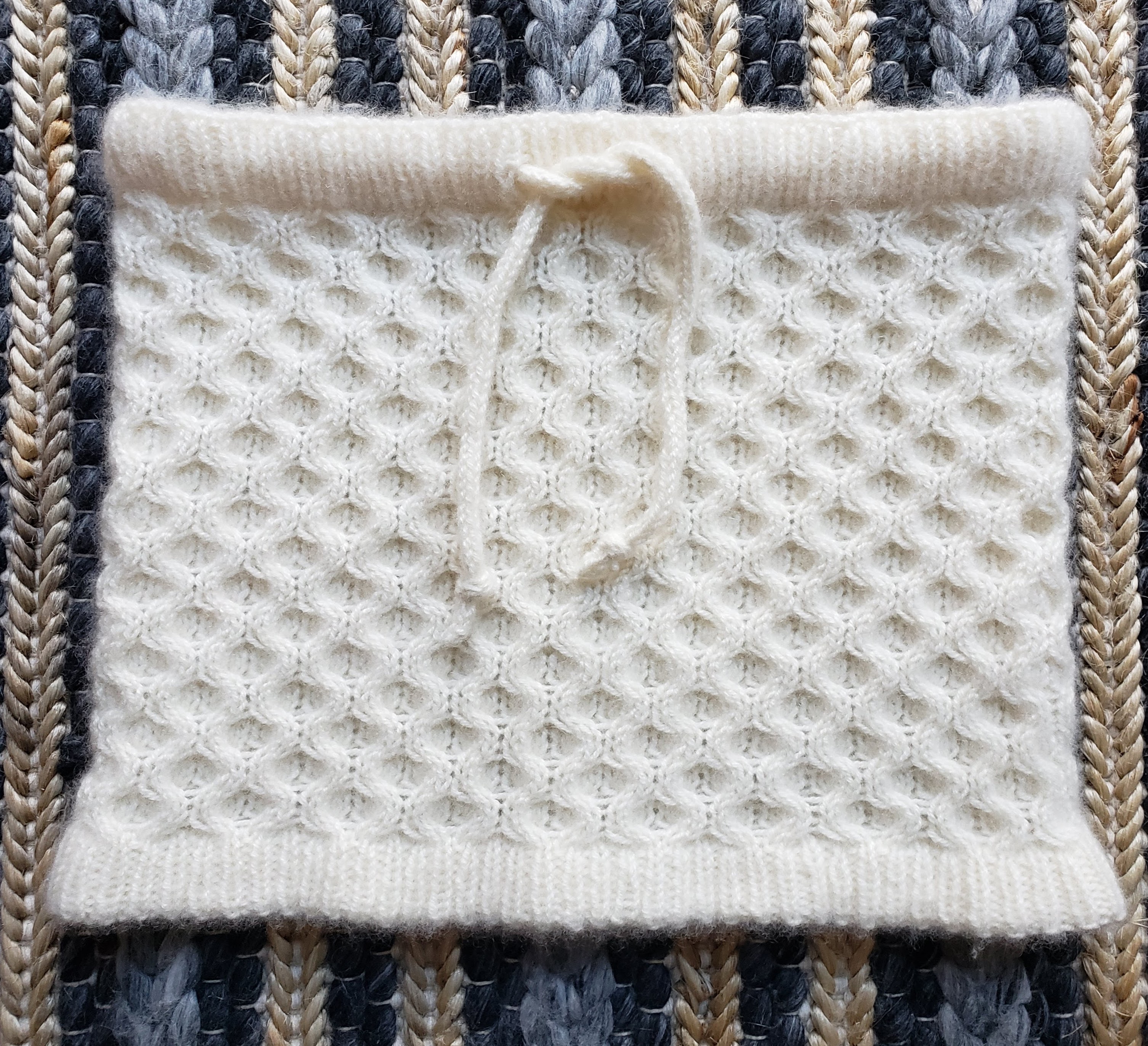 Best of all, that folded hem at the top of the cowl has another role: as the home of the i-cord drawstring that makes this cowl adjustable for maximum warmth in any weather!