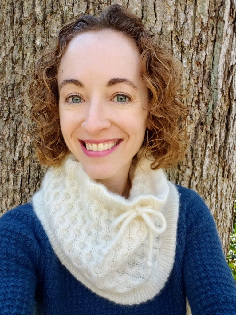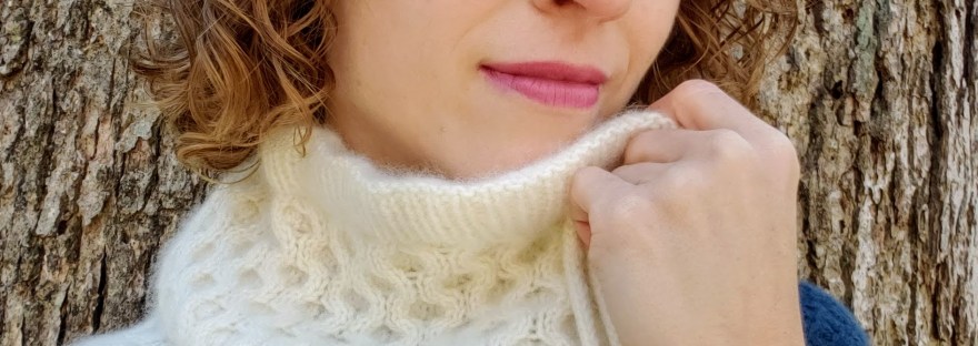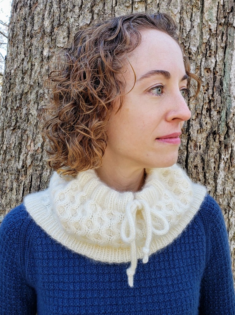 Of course, it never hurts when your cowl is knit in Clinton Hill Cashmere’s Bespoke DK cashmere! This yarn is unparalleled for its combination of softness and warmth. It also imparts a heavenly halo to the finished fabric, which I thought only emphasized the sense of having gathered a handful of fluffy clouds around the neck and shoulders. This yarn comes in a wide array of neutral shades (I used “winter white”) as well as punchy brights. The pattern also provides gauge and yardage information if you’re using a different DK-weight yarn from your stash!