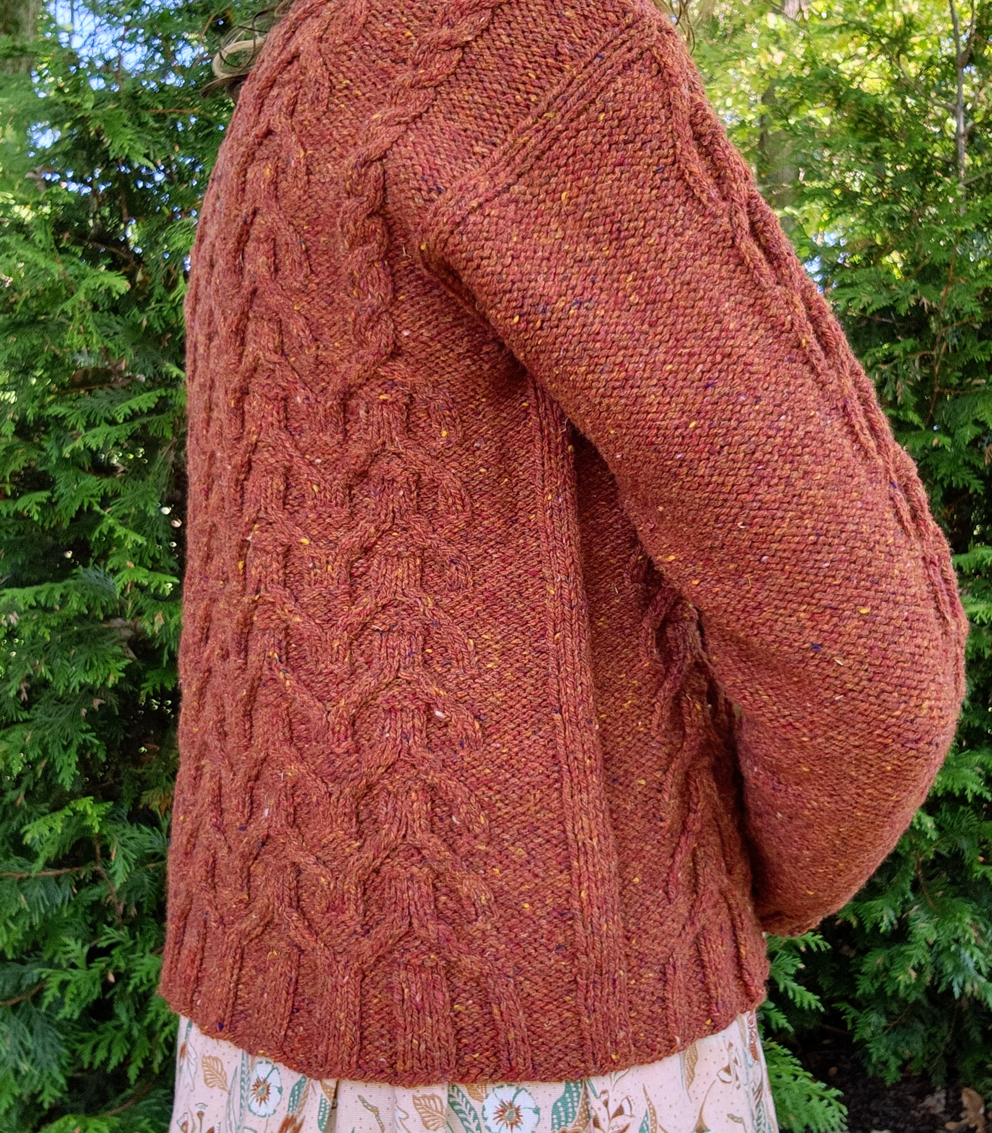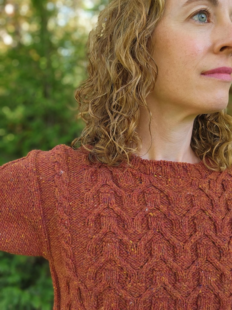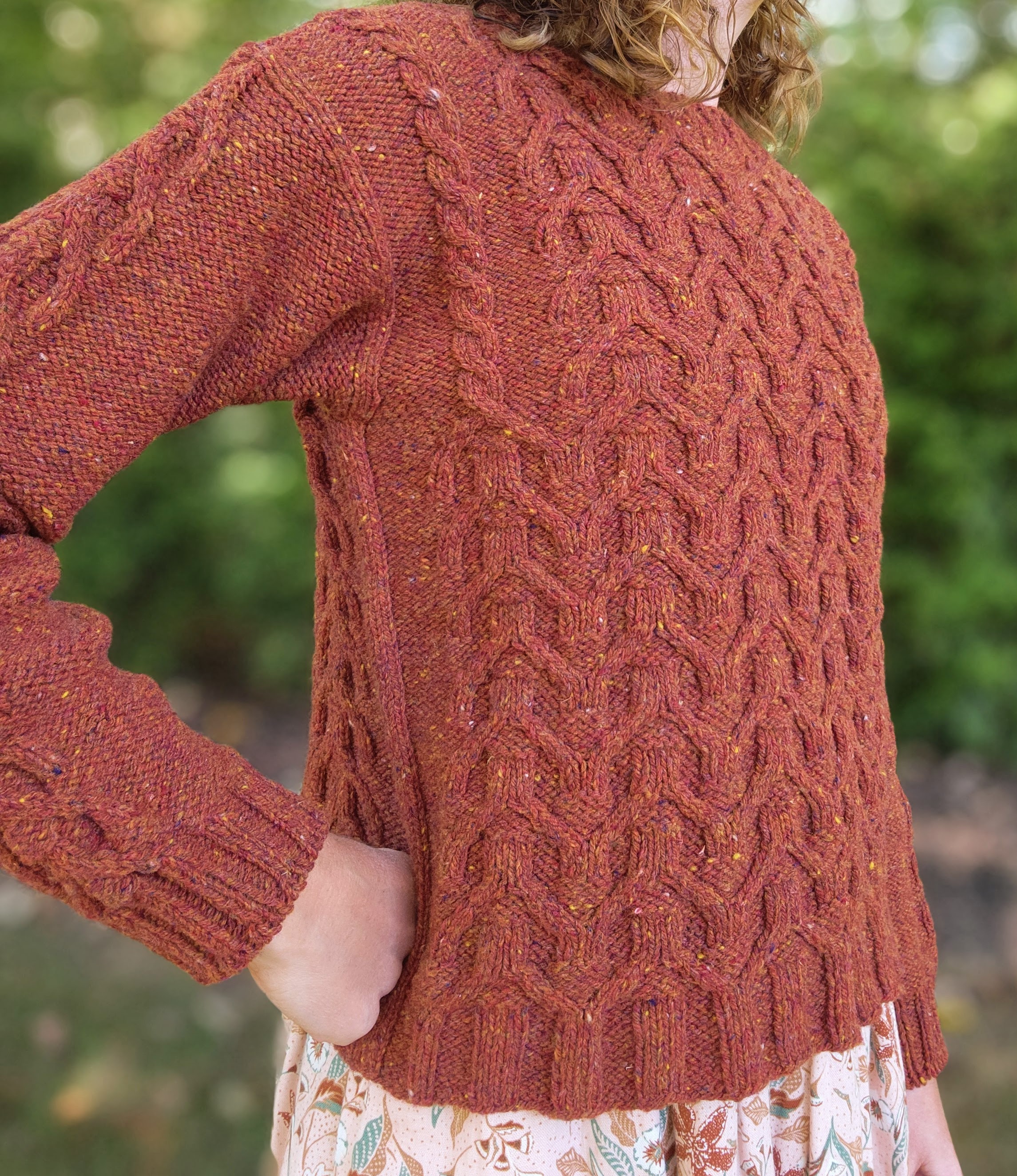 Don’t let all of those cables fool you, though. They’re deceptively straightforward and, after a few repeats, become intuitive as you knit. And to keep the knitting fun, I added a simple twisted cable to highlight the shoulder and a faux side seam that echoes the vertical lines of the cables.