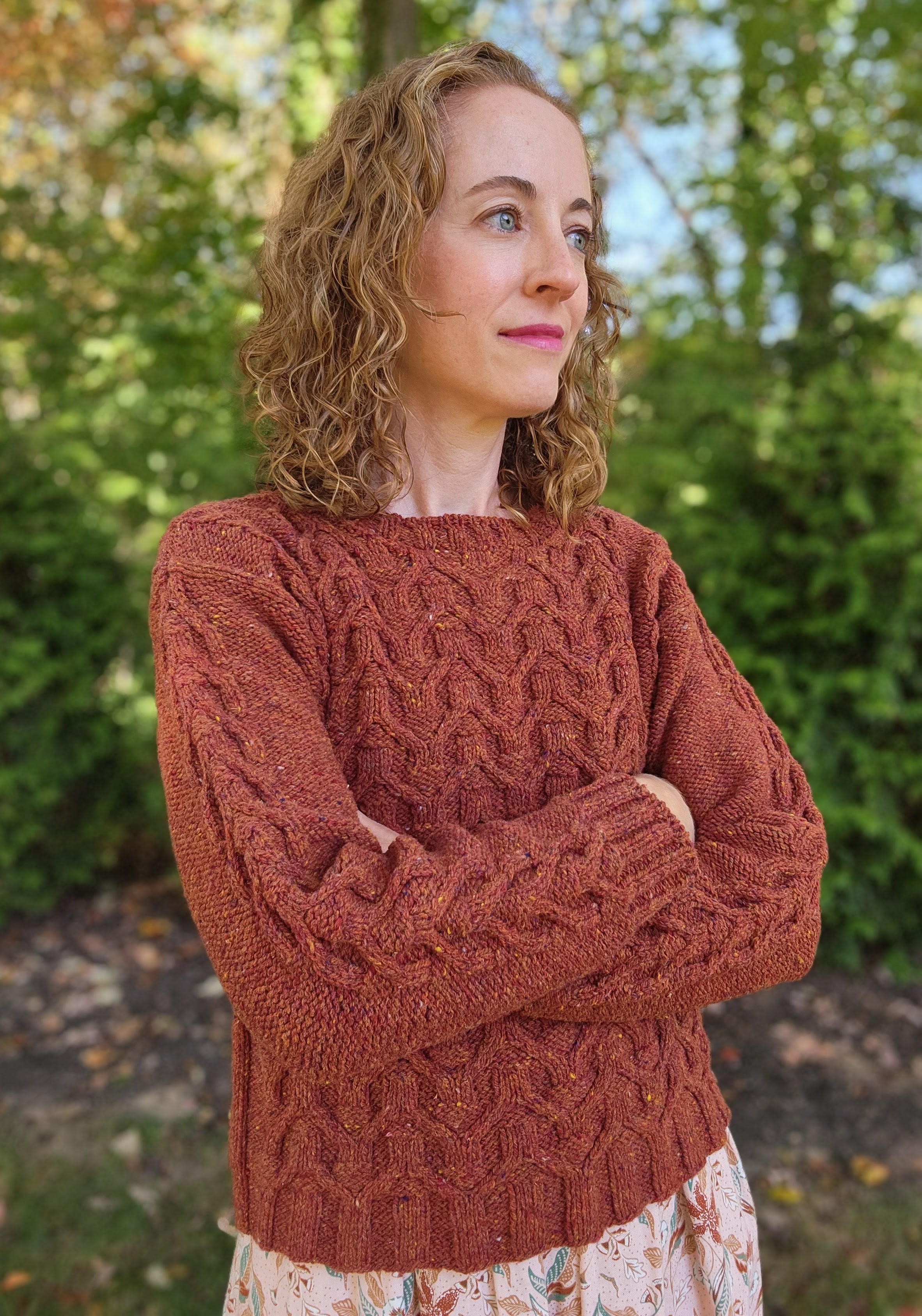 Not ignoring the sleeves, I included a single cable motif traveling down the arm while keeping the rest of the sleeve easy to wear (and fast to knit!) in reverse stockinette stitch. The sleeves seemed to be a fun spot for my test knitters to experiment, as one test knitter removed that cable in favor of having plain sleeves, and another knitter shortened her sleeves to a flattering bracelet length.