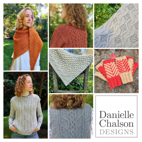 And here’s a collage featuring some of my 20 patterns in the sale, including my newest designs from this past year, the Magnolia Blanket, the Backbone Vest, and the Ever Upward Pullover: