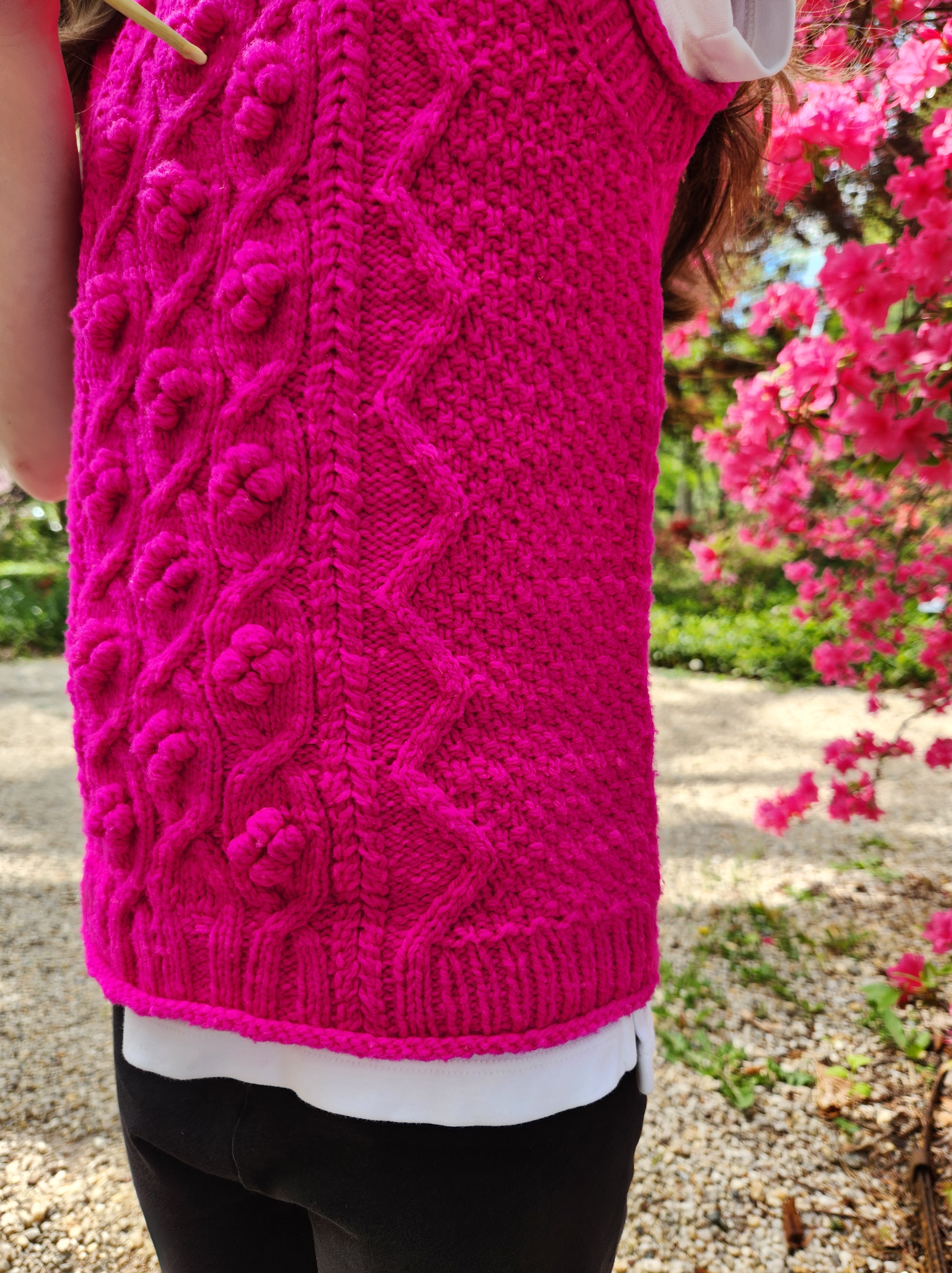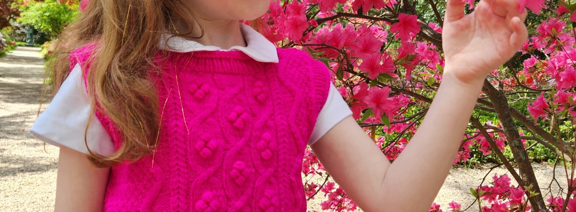 The basic kids’ vest gets a fun upgrade with cables, zigzags, optional bobbles, and mood-lifting color! This vest is so easy to wear, thanks to the stretchy rolled edges that make getting dressed a breeze, and enough positive ease to move and play with a shirt worn underneath. The texture of the cables shows up best in a smooth yarn that has a solid or mostly solid colorway. Whether you choose a traditional neutral color that works with any child’s wardrobe or a bright and wild pop of color, this vest will provide a cozy, fanciful hug through three seasons of each year.