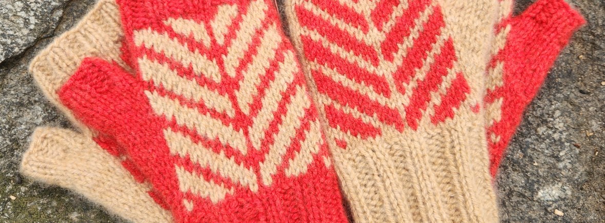 For two matching mitts, you’ll need 70 (80, 100) yds of MC and 40 (40, 50) yds of CC. For two mitts that swap the MC and CC, you’ll simply need 55 (60, 75) yds of each color!